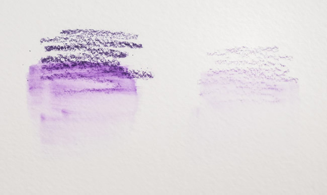 The more pencil you add to your drawing, the more intense the colors will be when they're wet. For lighter colors, try to color in a "loose" manner and use a very light pressure . You can even layer different pencil colors to blend a new pigment !