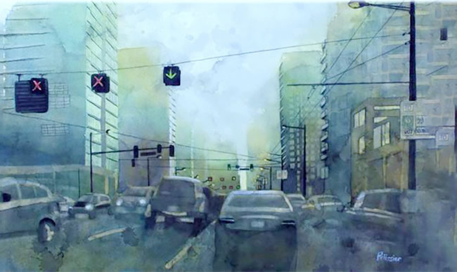 "Early this morning," watercolor and mixed media by Sandrine Pelissier