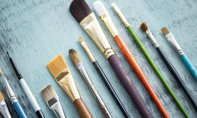 Nope, one brush doesn’t fit all. With a canvas, you’ll need to use acrylic or oil-paint brushes that have long handles and stiff bristles. These will hold up better as you’re painting than, say, delicate watercolor brushes.