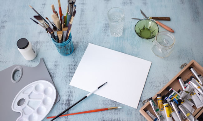 How are you going to paint — physically? Do you prefer an easel, where the canvas is upright or at a slight angle? Or do you work better with the canvas on a flat surface, right next to your palette? Try them both out, and do what feels best. Set up your entire workspace before you start painting , too: Having your paint brushes, palette knives, water and any other supplies you'll need at the ready will make your painting time stress-free and fun.