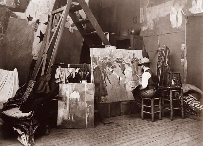 Henri de Toulouse Lautrec (1864-1901) was a famous French artist of the post-Impressionist period. He was known for capturing Parisian nightlife and dancers in his paintings, lithographs, and posters, using bright color and arabesque line. Although commonly listed as a left-handed painter, a photograph shows him at work, painting with his right hand.