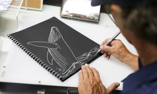 I think it comes from a real deep connection to nature. I'm an artist, a citizen scientist, you might say, a naturalist, and a diver. [Indeed, he's an International Scuba Diving Hall of Famer ] While I'm diving I'm simultaneously painting pictures in my mind's eye that I can later incorporate into my painting, sculptures, and murals. As an artist I think I was in the right place at the right time, growing up in the 70s with the first Earth Day, Greenpeace, Jacques Cousteau. My life is in art and science, art and conservation.