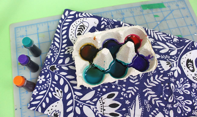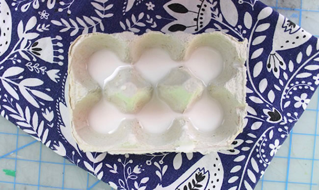 After your mixture looks uniform and shiny, pour it into an egg carton, filling each cup about halfway up. Don't overfill them or the pigments will run into one another in the next step.