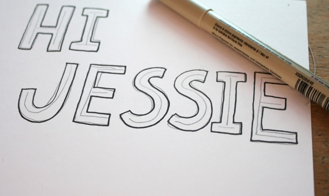 Using a pencil, sketch a few letters or a phrase — or better yet, your own name. Make the letters a little shorter than you'd like the final height to be, and leave some extra space around the letters so that you have room to block-ify each one. You can make the letters upper or lowercase, whichever you prefer.