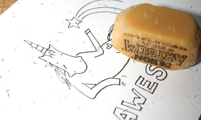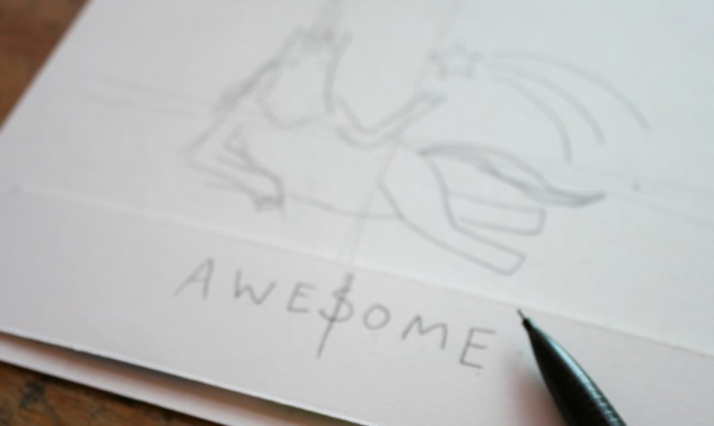 Trace your artwork and block letters with a pen or marker, then erase any excess pencil lines that show through.