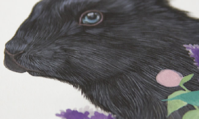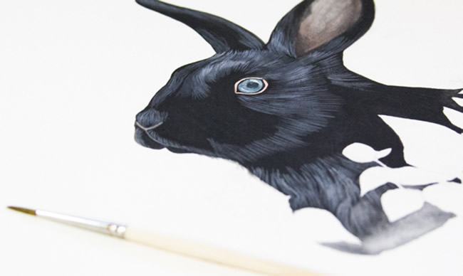 This is a new painting I've been working on, and although I used gouache , you can easily adapt these techniques to any medium. Just keep in mind that for the particular technique I used in the rabbit painting, it's important to let the paint dry thoroughly between each new layer of fur.