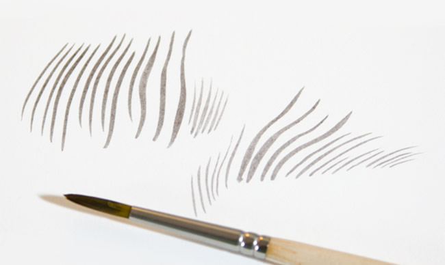 On your scrap sheet, you can also practice making long motions with your brush, starting with more pressure at the beginning of the stroke and gradually releasing pressure at the end of the stroke to create the tapered look of fur.