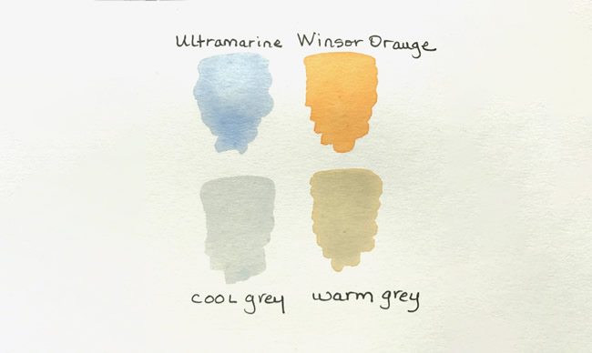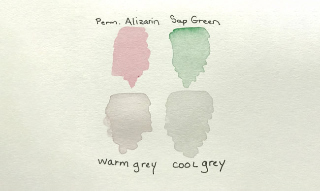 No matter which complements you use, each combo creates warm and cool grays: