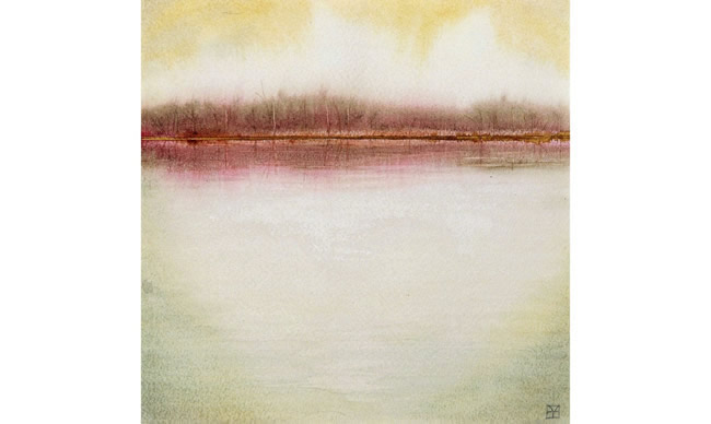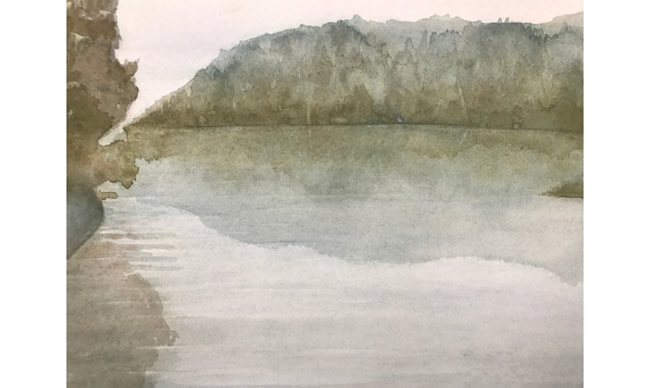 For the sky, we created a very diluted wash of cadmium red with a touch of the green from the trees. This color was also used in the reflection of the sky in the water.