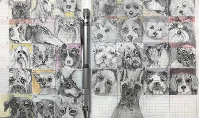 I've been doing the #hobonichichallenge on Instagram every morning of 2018. The theme for January was "the year of the dog," and each day's prompt was a different dog breed. I just drew each day’s prompt in the calendar square for that day, but you can fill up sketchbook pages if you'd rather. I limit myself to 5 to 10 minutes tops, but, seriously, how fun is it to see all those poppy faces lined up across the month? Totally worth it.