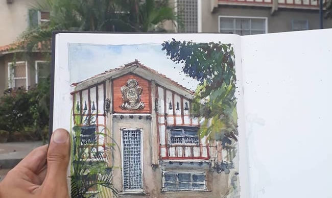 Juan Carlos Figuera uses watercolor to render perfectly sketched buildings that capture a place as well as (or even better than) a camera could.