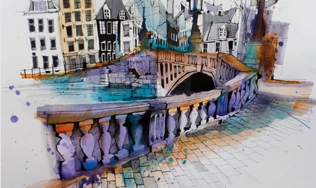 The urban sketcher Jowita takes a spontaneous approach to her drawing. Imperfections like splatter marks cover her work, giving her lifelike drawings a sense of movement and a dash of chaos, in an approachable, visually-exciting way.