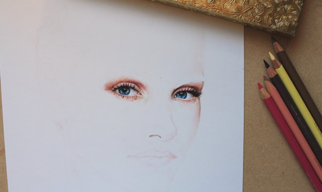 Finally, go over the whole area with the lightest flesh tone you used and blend every layer by coloring in circular motions. This is when you’ll press down harder than you did before.