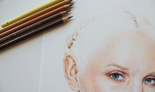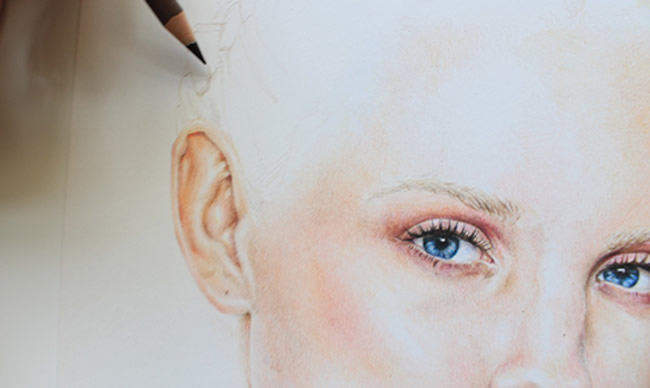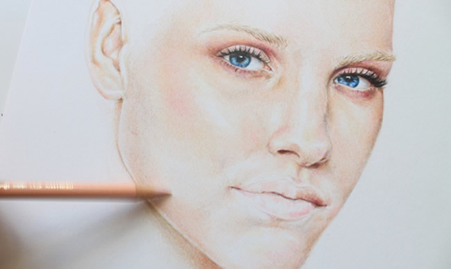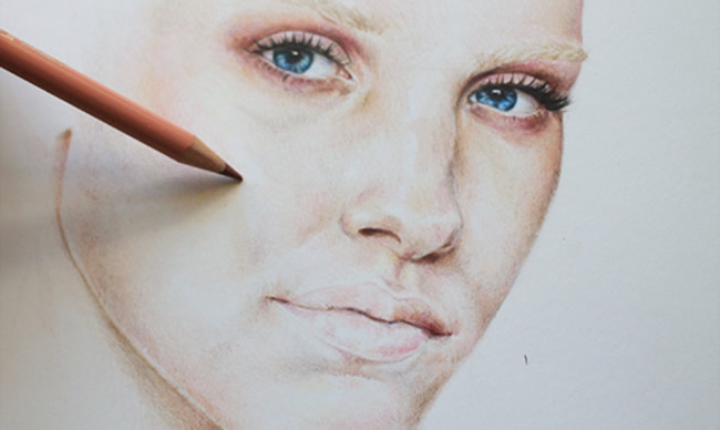 Keep building the layers in the darkest areas and finish off by pressing down harder with some of the lighter flesh tones to blend every layer of color together.